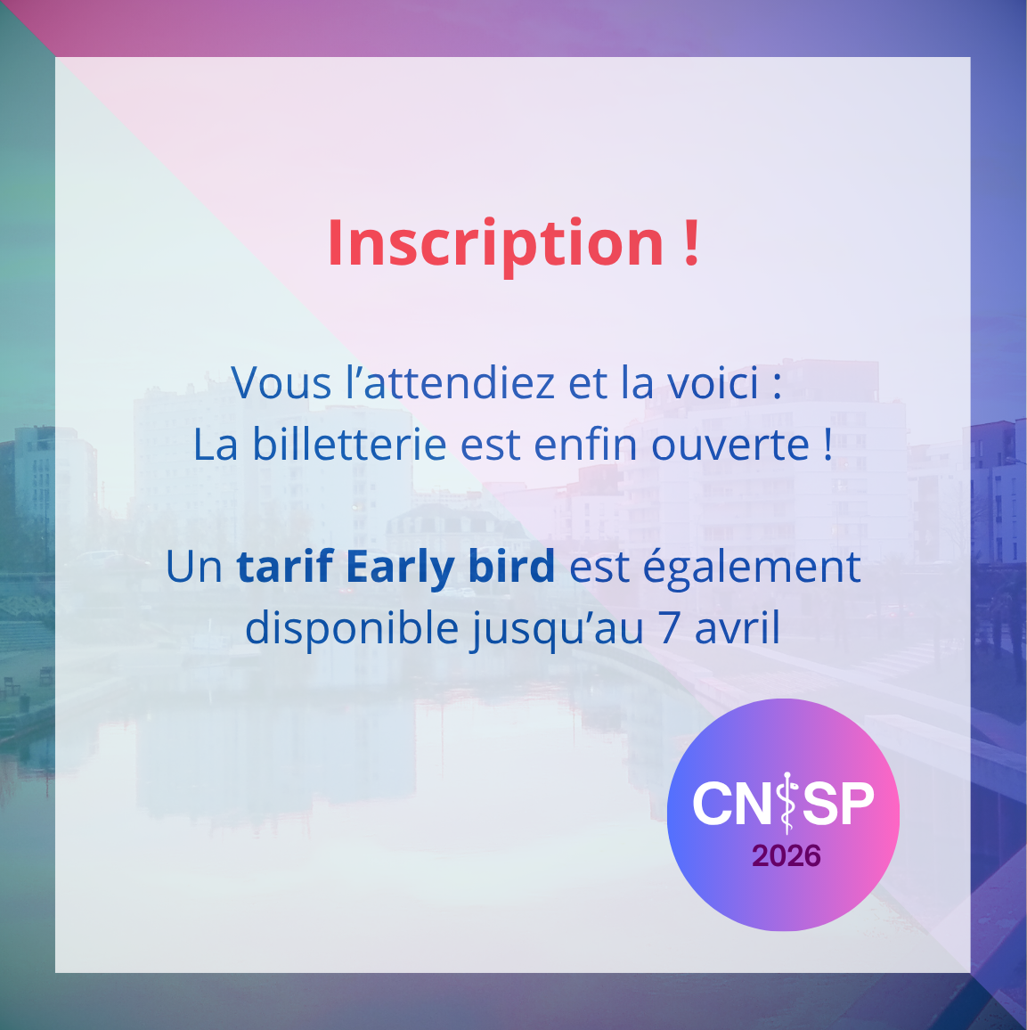 Chères et chers internes, Nous avons le plaisir de vous annoncer que les inscriptions au CNISP 2026 ouvriront le mardi 24 mars 2026. Nous sommes très fièr-es d’arriver à ce point d’étape qui va rendre plus concret cet évènement. Nous vous proposerons durant 2 semaines un tarif early bird (la fiche de paye arrive, pas …